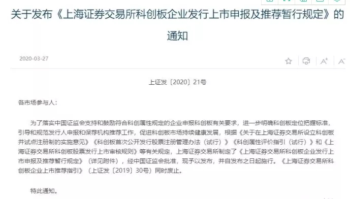 上海證券交易所科創(chuàng)板企業(yè)發(fā)行上市申報(bào)及推薦暫行規(guī)定