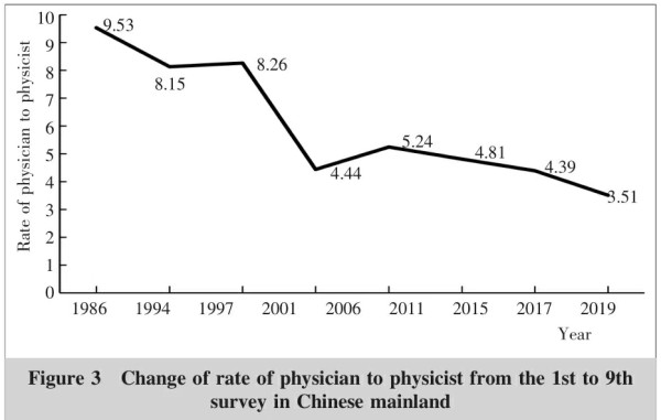 放療醫(yī)師/物理師比例繼續(xù)下降至3.51∶1,詳見圖3(Figure 3) 。
