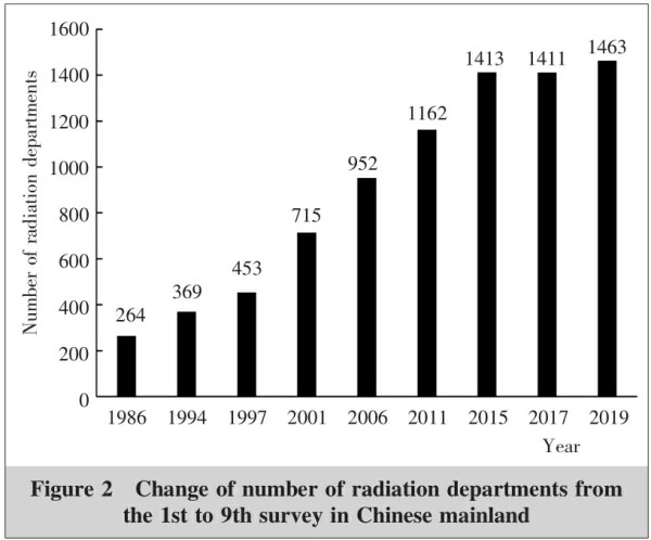 9次放療行業(yè)調(diào)研中開展放療單位數(shù)量趨勢圖見圖2(Figure 2)。