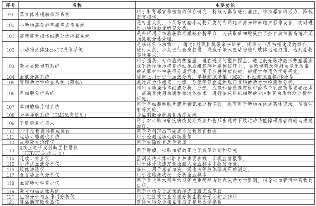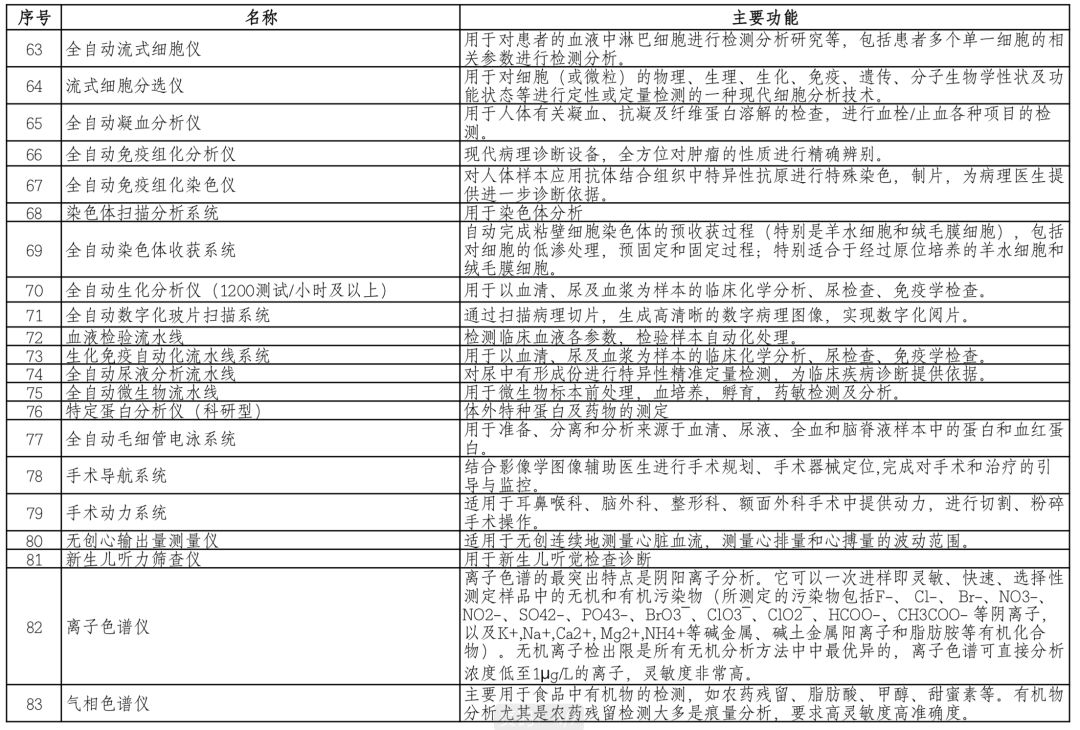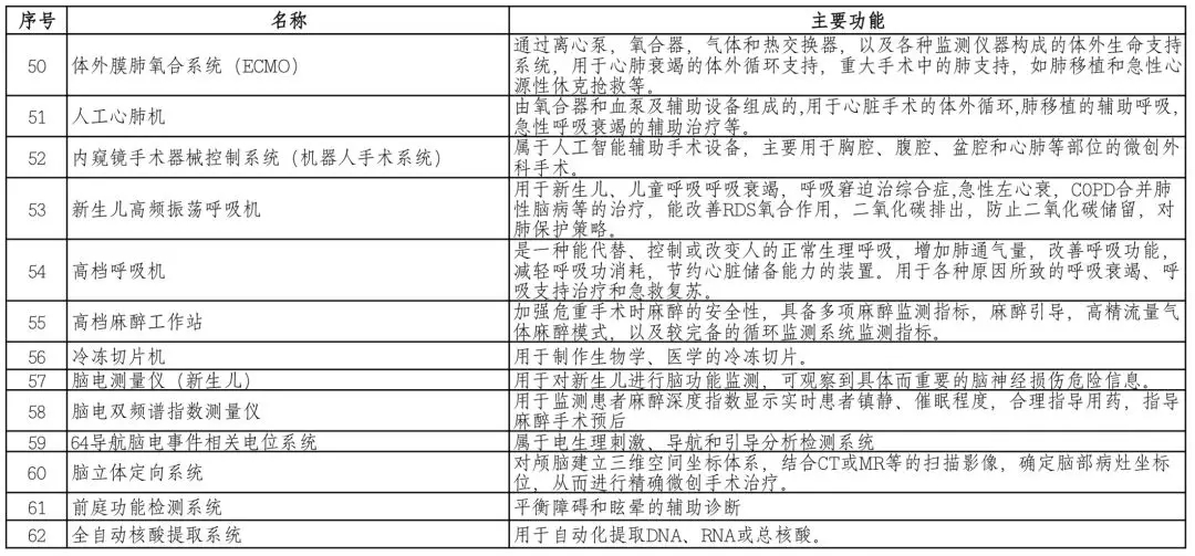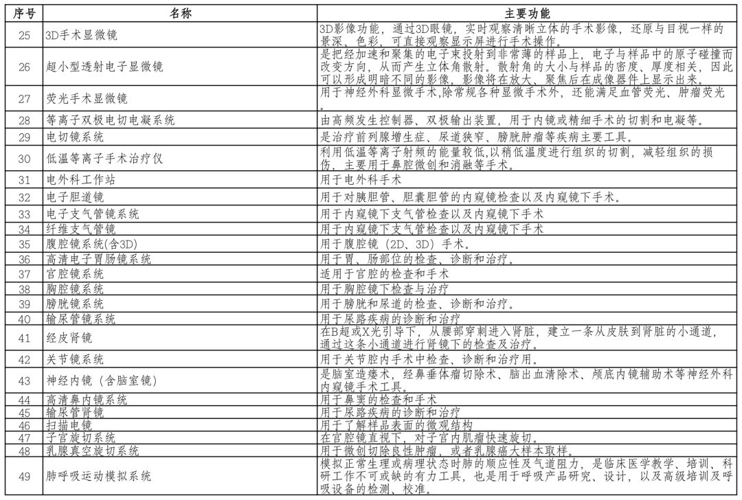 附:上表中醫(yī)療器械對應(yīng)的主要功能