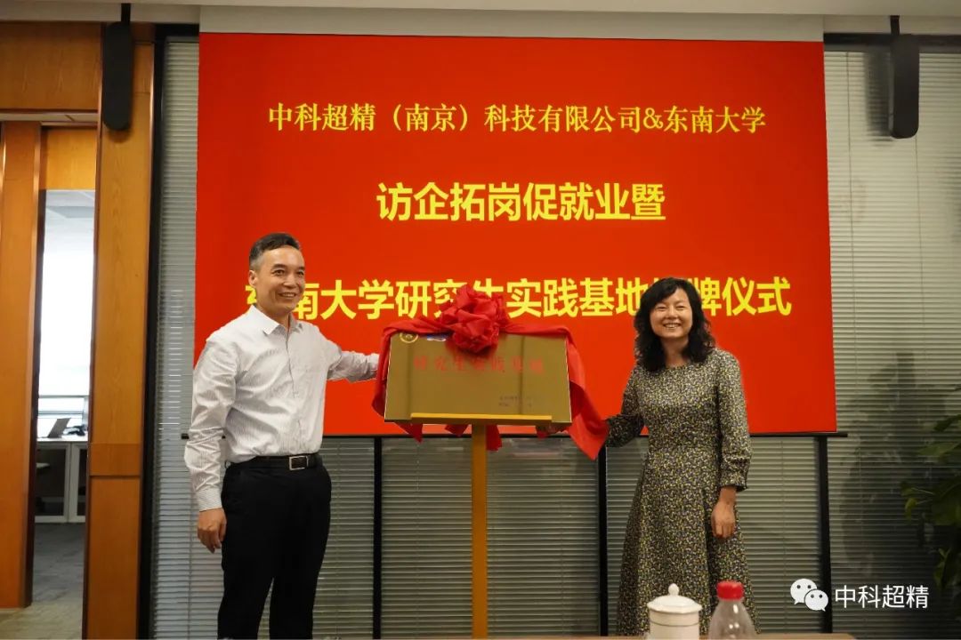 5月27日下午,中科超精與東南大學“訪企拓崗促就業(yè)專項行動暨東南大學-中科超精研究生實踐基地揭牌儀式”在中科超精召開。東南大學研究生院副院長袁榴娣、東南大學生命科學與技術學院黨委書記洪宗訓、東南大學生物科學與醫(yī)學工程學院黨委書記張宇及相關領域教授專家以及中科超精(南京)科技有限公司總裁祝義亮及經營管理班子成員參加會議。